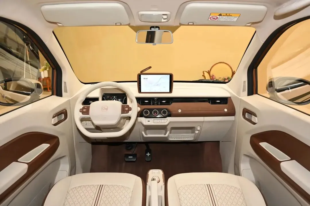再看小蚂蚁,两款配置都叫“喜爱”和“真爱”,续航都是271公里。换了15英寸轮圈,车里给了10.4英寸大屏,像倒车影像、雷达、电子手刹、自动驻车这些实用配置都跟上了。