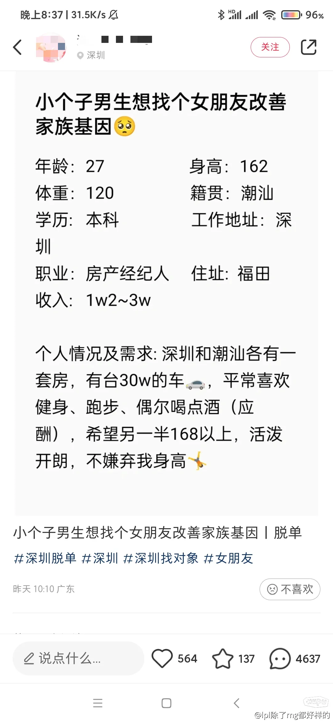 小个子男生想找个女朋友改善家族基因