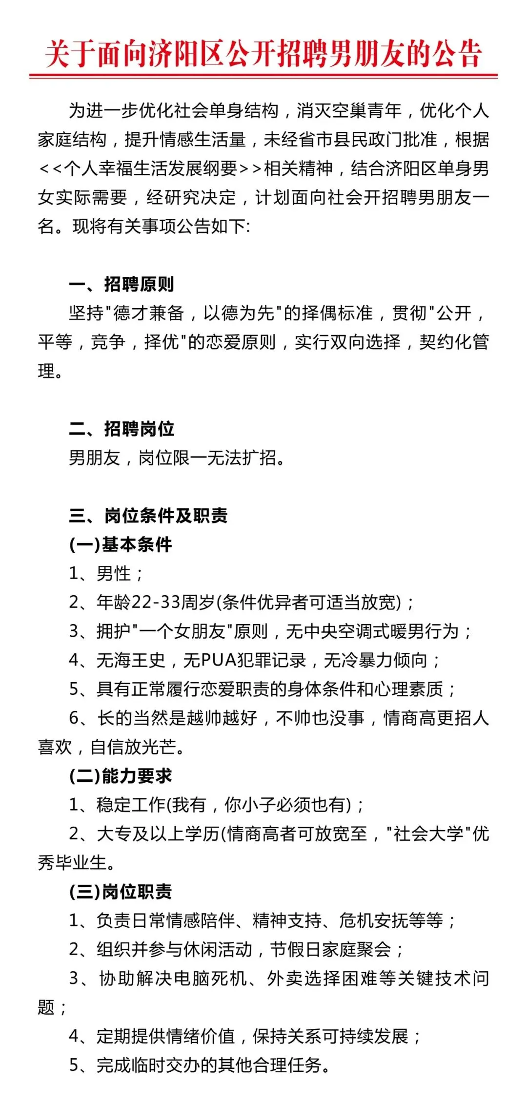 >【微济阳】关于面向济阳公开招男朋友的公告