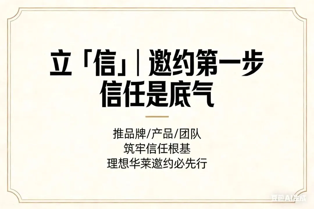 光有信任不够,得让他清楚,这场邀约、这份理想华莱事业,和他息息相关、价值满满,精准做好价值匹配,他想参与的心自然会被点燃。