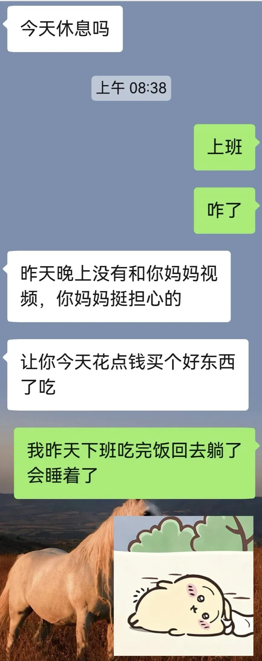 晚上吃完火锅,我跟叶老师(本人男朋友)聊起这个事情。叶老师(震惊脸):“你居然要天天跟阿姨打视频聊天吗?”ps:他知道我会经常跟爸妈聊天打视频,但是不知道频次。我:“对啊!我不给她打过去她会给我打过来呀!但是我现在有时候要上晚班,她怕打过来我在上班,所以现在都是我打过去。”叶老师沉默了一会,依旧表示很震惊,“为啥呢?”