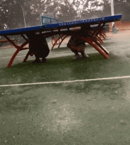 你们两个是不是没看天气预报啊!怎么躲在这地方了!出不去了吧!