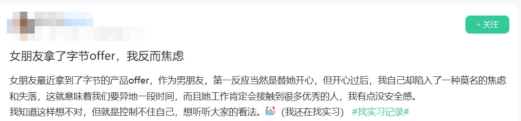 女朋友进大厂,说明找了一个很优秀的对象,换个角度想是不是就跟更能接受一点?