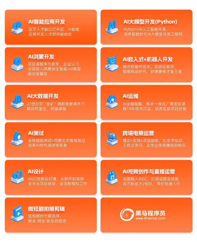 * 黑马热门10余大学科,总有一门适合你,如果不知道自己适合哪一个,文末扫码添加老师,一对一指导哦