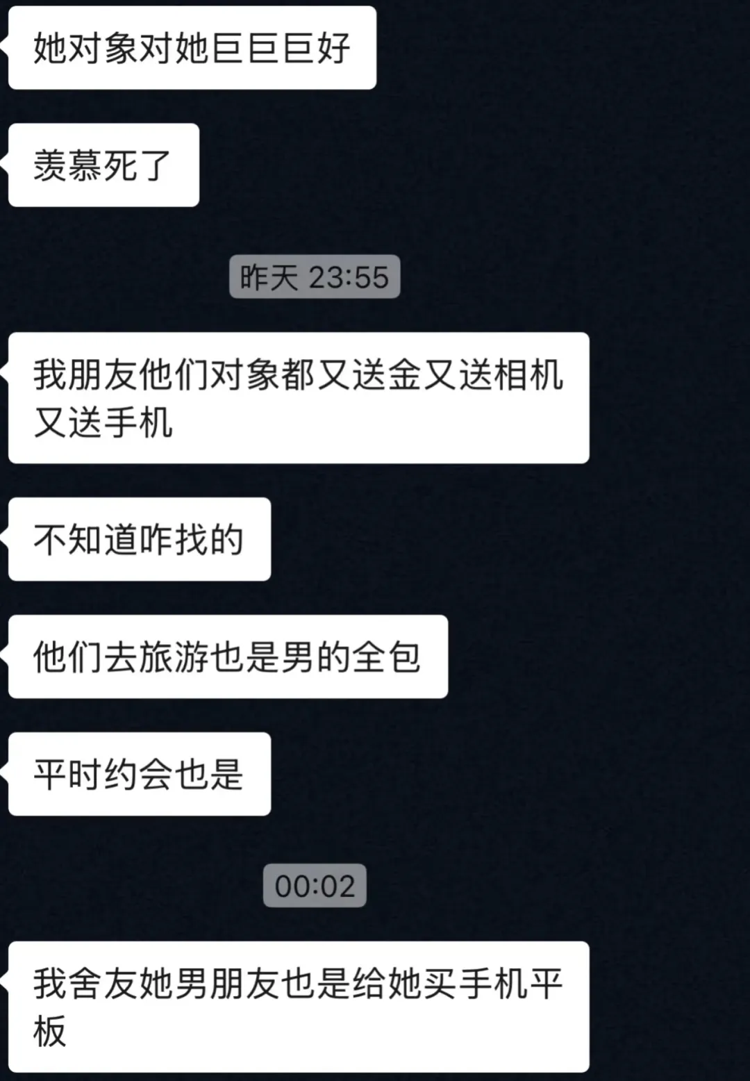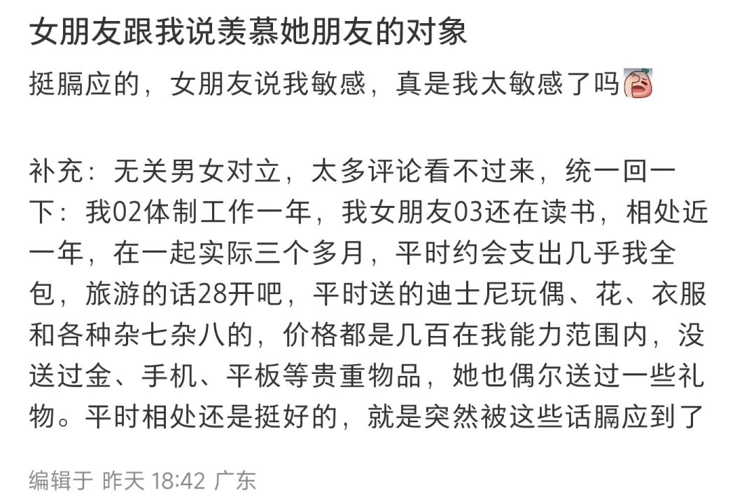 >女朋友跟我说羡慕她朋友的对象