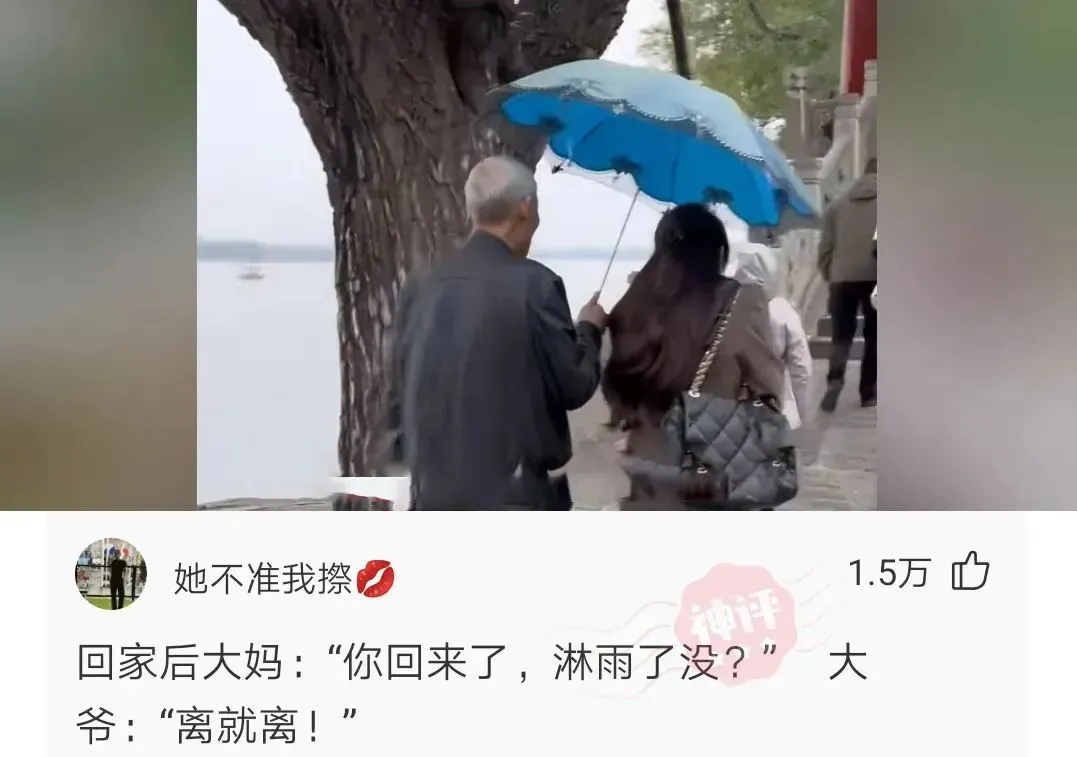 下雨了没带伞,前面有一大爷撑,伞,厚着脸存往大爷伞里站~