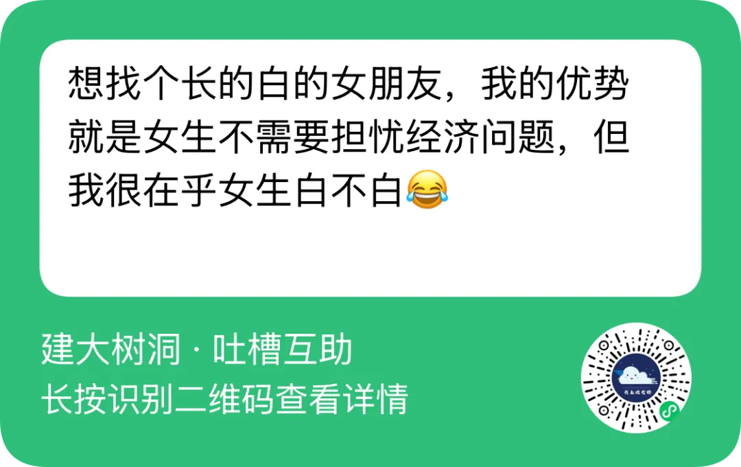 >想找个长的白的女朋友,我的优势就是女生不需要担忧经济问题