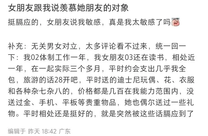 >“女朋友跟我说羡慕她朋友的对象”