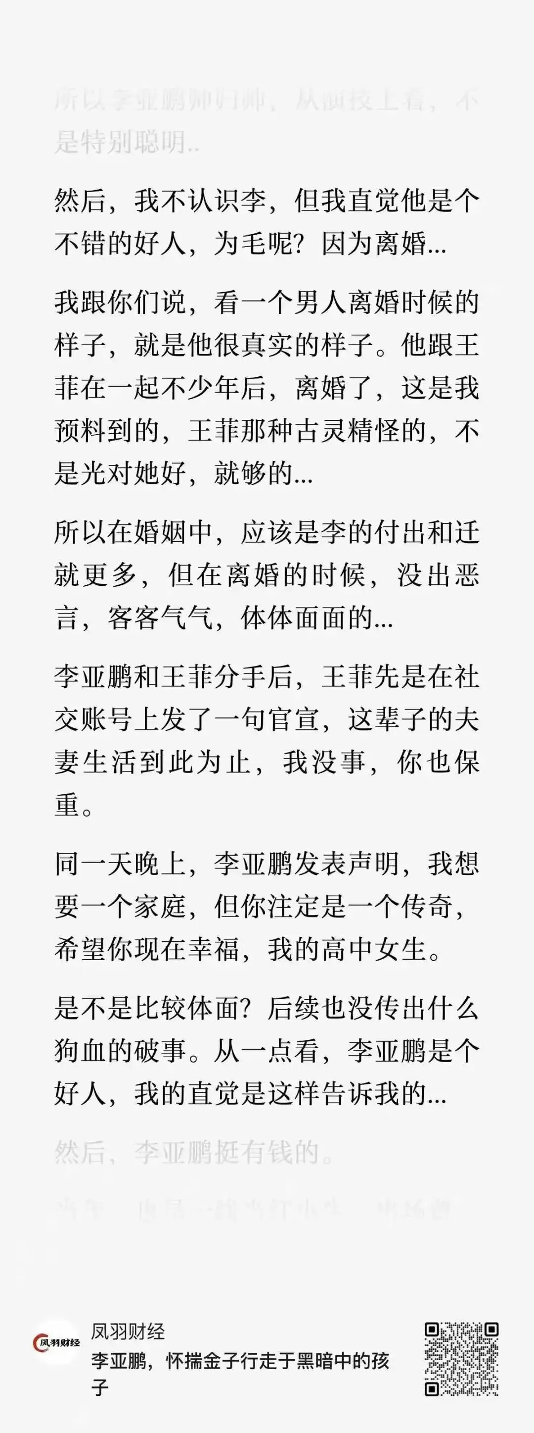 三年前,李亚鹏被限高、被执行、被嘲笑的时候,我写过一篇文章,大意只有一句话:他不是坏人,也不是骗子,他只是一个不太聪明的好人,怀揣金子,行走在黑暗之中。