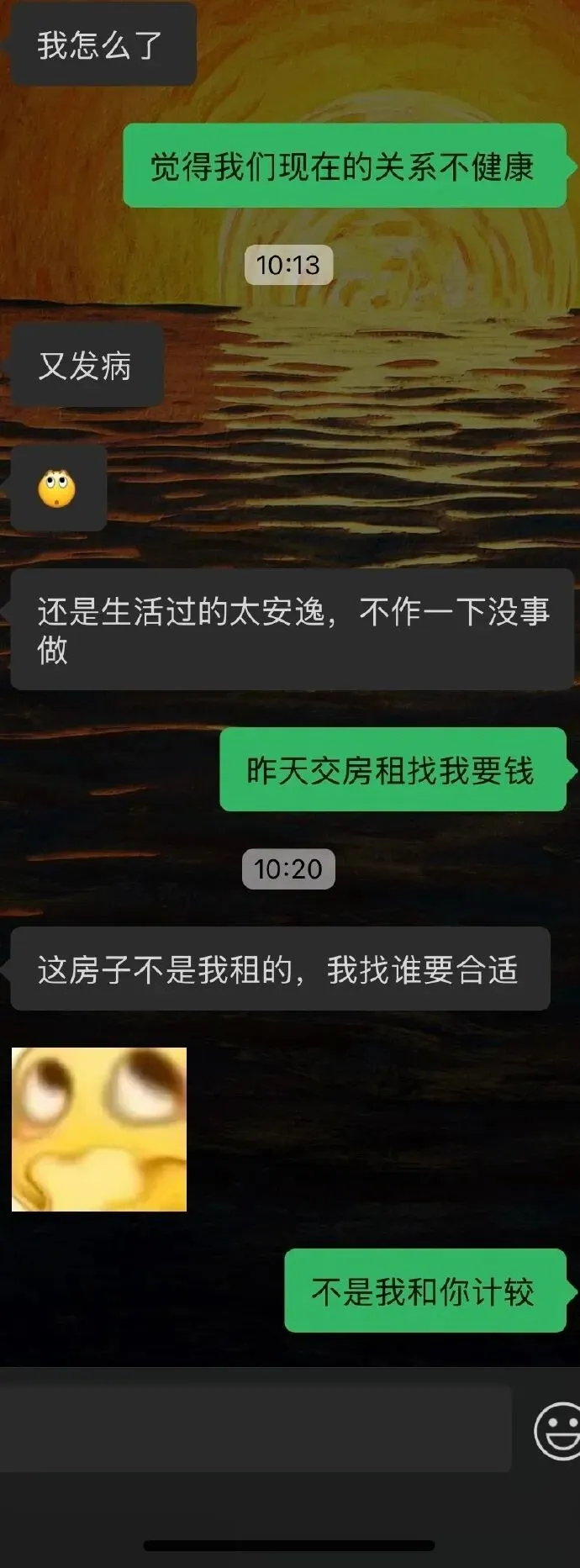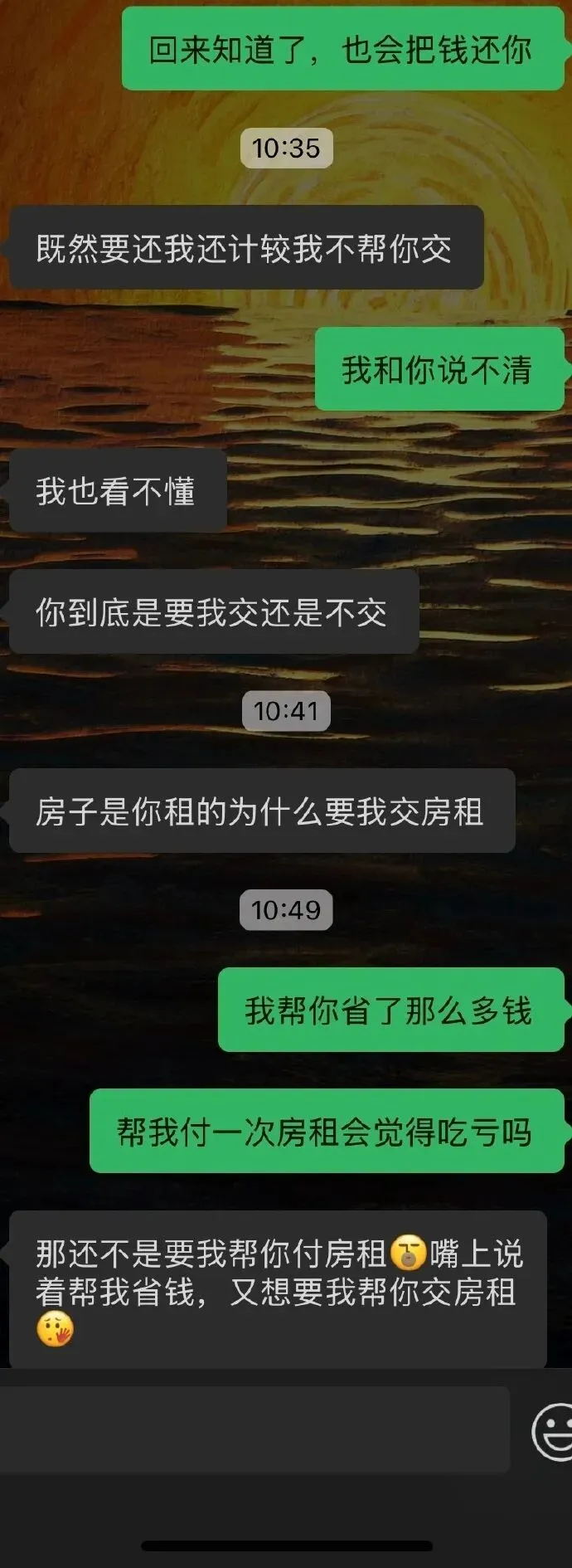 想到上面我心里不是个滋味,觉得自己虽然没有给他花很多钱,但是我替他省了很多钱,恋爱我觉得物质排在第3,感情第1,性第2,觉得他并不是真的爱我,爱我知道我替他省这么多钱,要过不会再要我给他钱,哪怕他出了一半的房租,我心里都稍微好受一些,今天就因这件事和他展开了讨论,他觉得我是在意钱财和他计较,说我对他的感情也没有真的,我想知道大家对于这件事的看法。