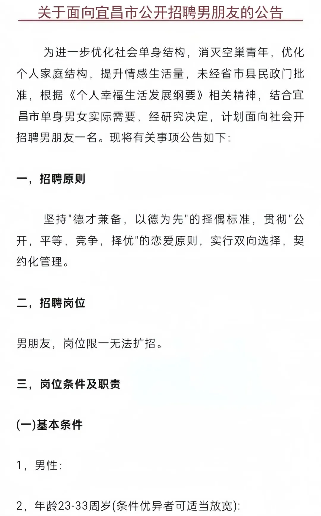 >关于本人面向宜昌公开招聘男朋友的通知!