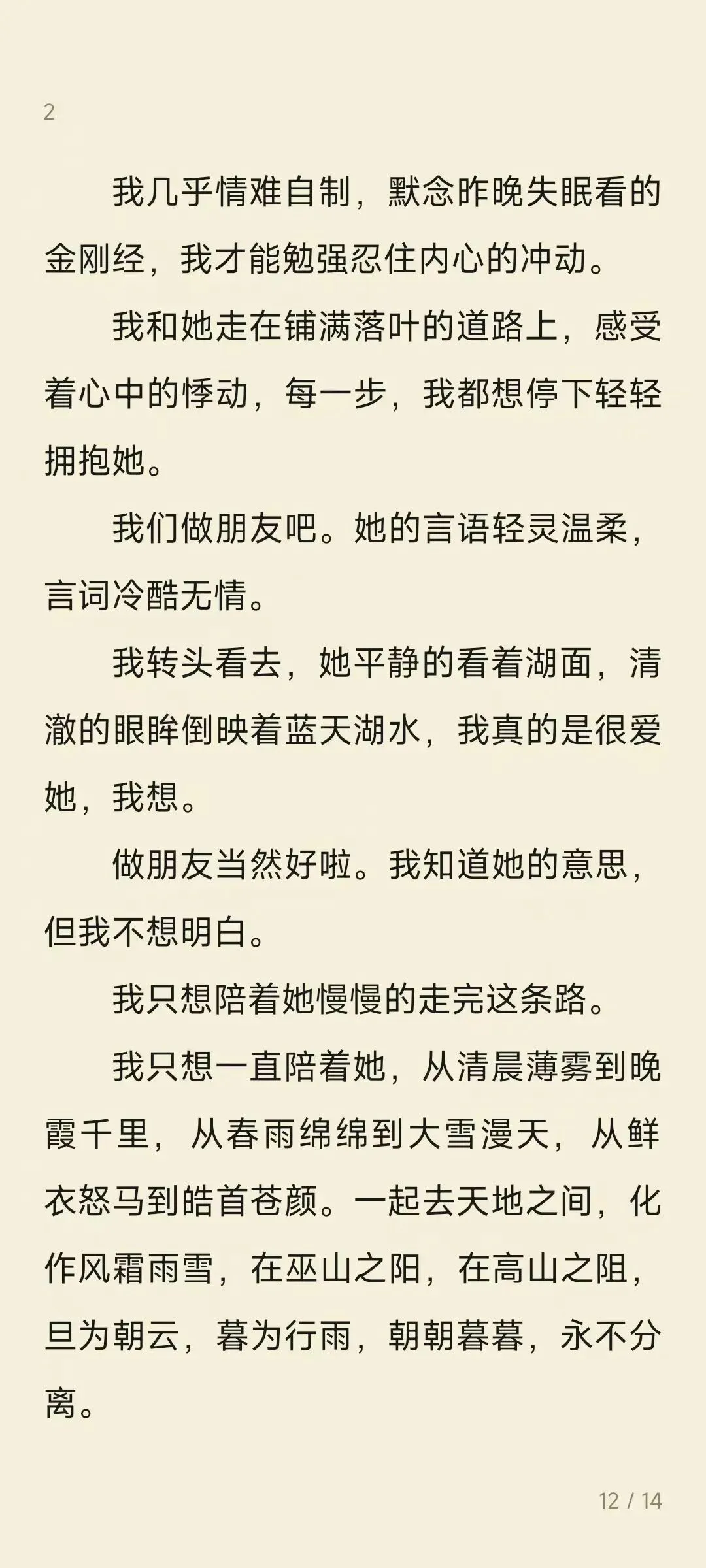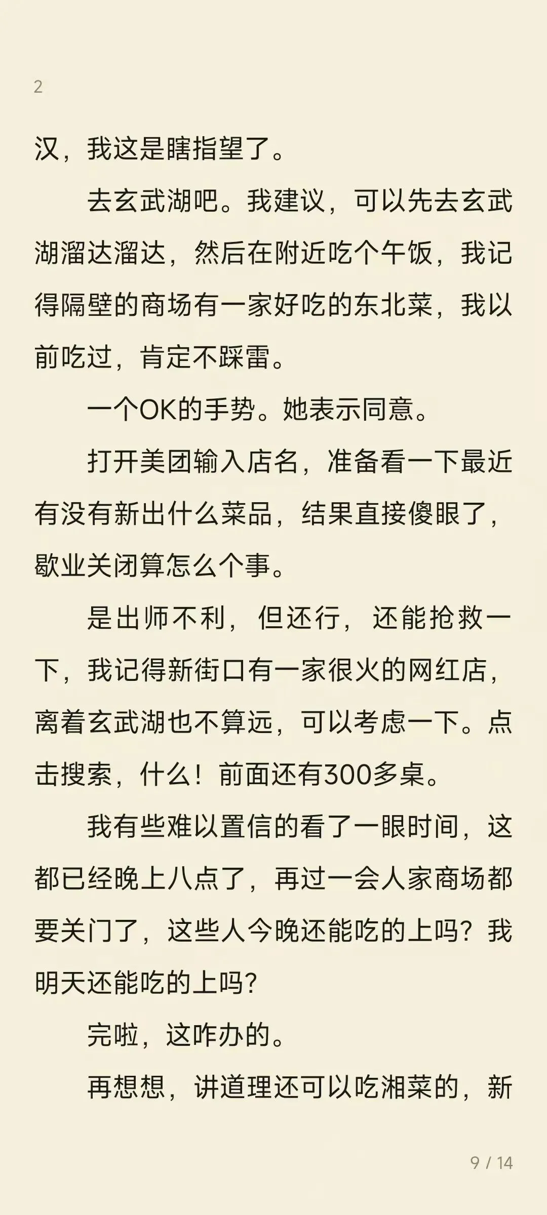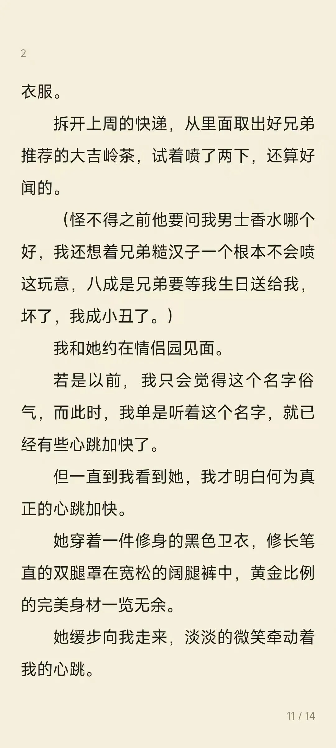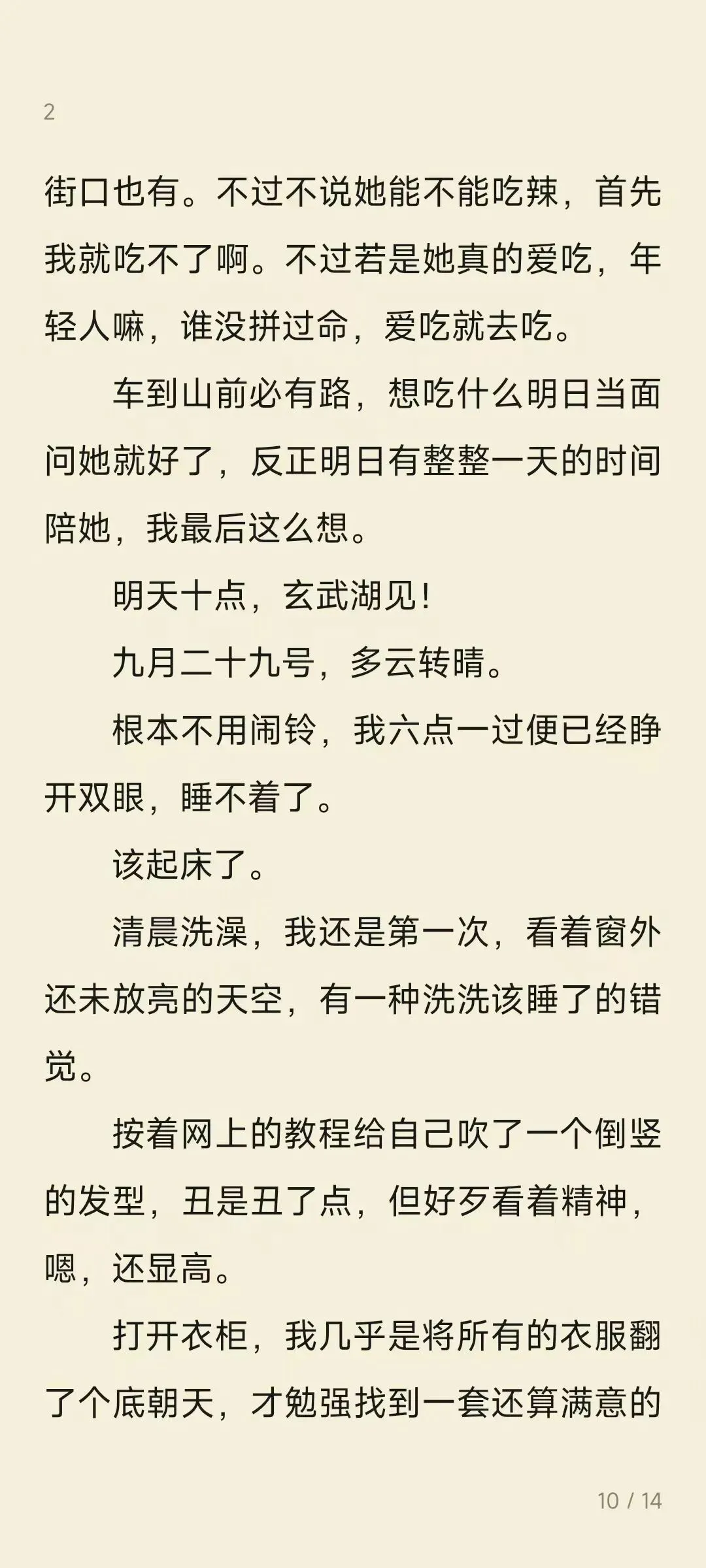 大家好呀,今天是周二又是个加班日,潇姐儿加好班来更新啦,今天给大家带来的是小说的第九章,这一章的背景是是峰宝贝在和潇姐儿第一次去玄武湖玩之前。不知道大家第一次和喜欢的人约会是什么样的心情,或是激动或是忐忑。我和峰宝贝第一次出去玩便选在了玄武湖,那会我看了他发的第二章小说,觉得这个男生还挺有趣的,便答应他的邀约周日一起游玩。情侣园正好离锁金村近,所以我们在买完潇姐儿心心念念的鸡蛋灌饼后便从情侣园入口进入。那会我们并不非常相熟,可是缘分有时候就是这么奇妙,丘比特之箭雕像似乎是我们爱情开始的见证者,那天的天很蓝湖水倒映着蓝天,我们一起漫步畅谈交心,一点也不觉得疲乏,只感时间飞逝,直到夜幕降临才分开。那天我们走了将近四万步,后来峰宝贝和我那天回去他连每天晚上的惯例跑步都没有跑,说从来没见过我这么能走路的女生哈哈。最后为我的峰宝贝打下call,一个有着小说梦的模块设计师,他的笔名是白柒栀,大家有番茄和微博的可以多多关注哦。
