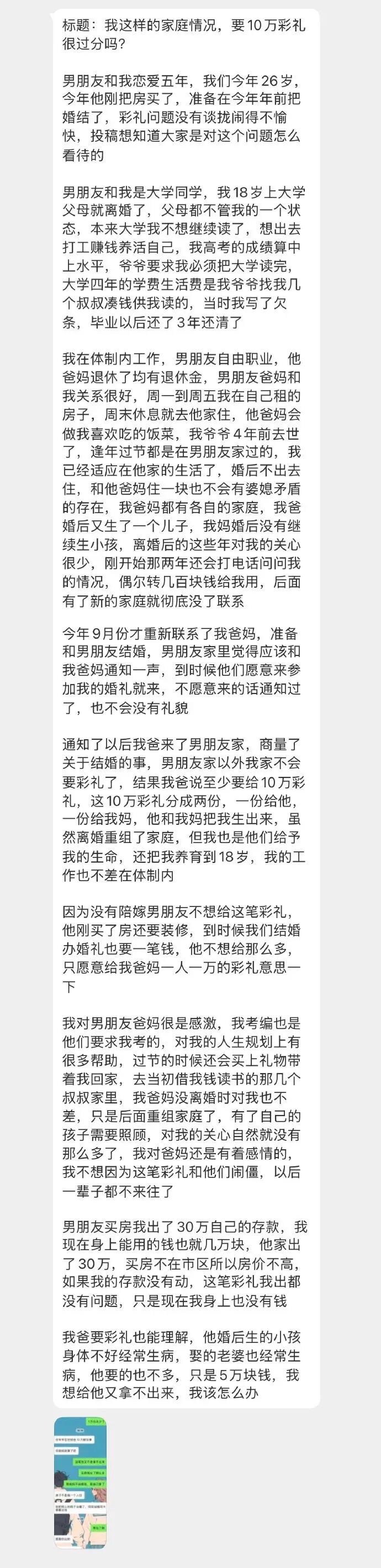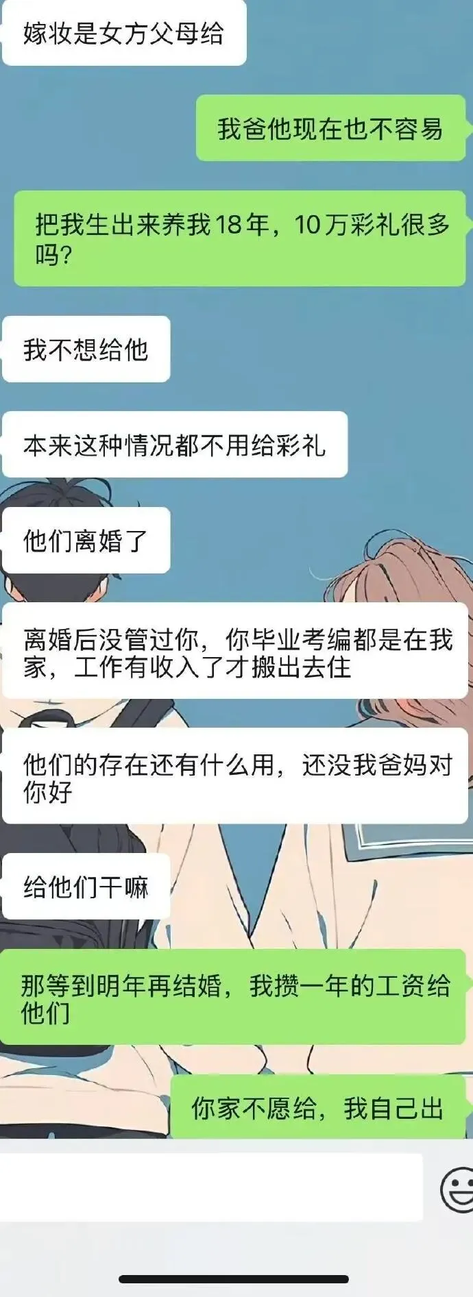 @小仓鼠超可爱呢:可以给彩礼,但是不能给你爸妈