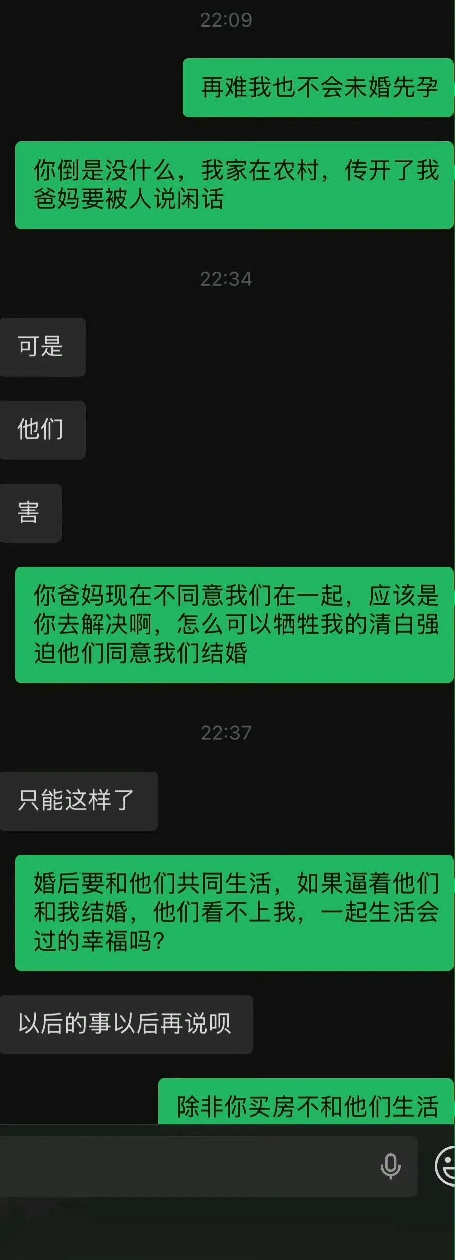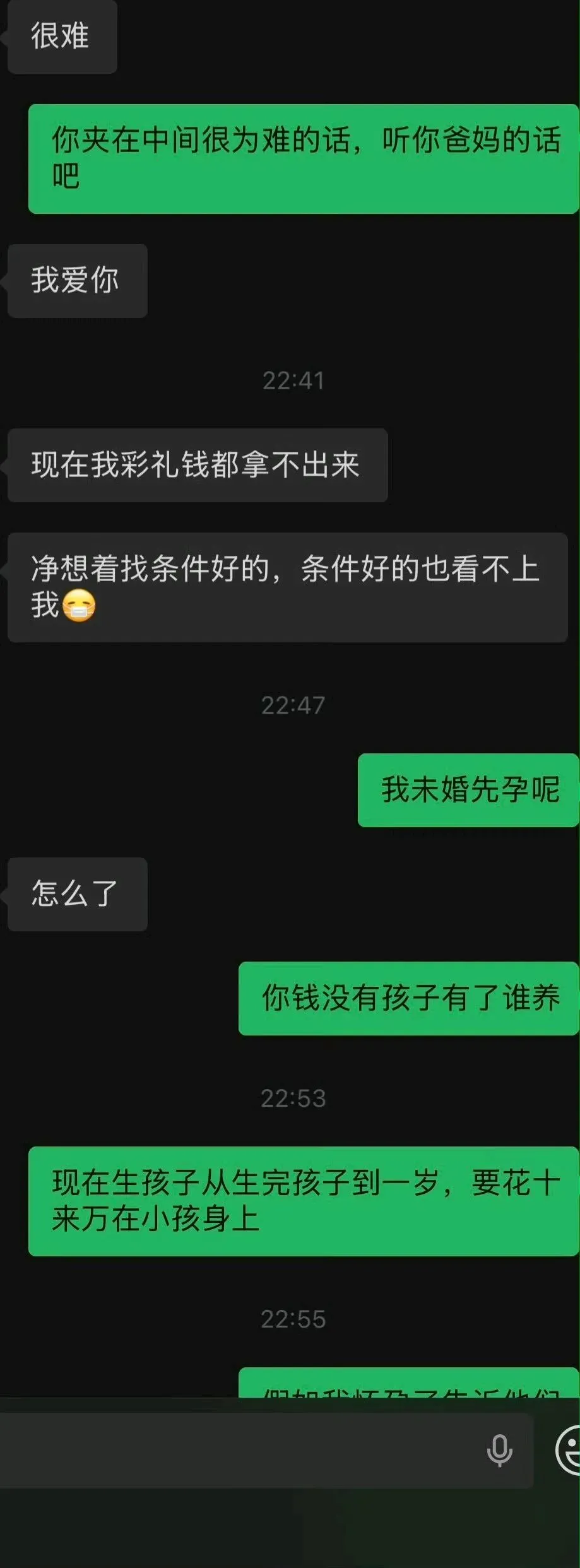 阿漩漩漩: 他父母本来就看不上你,你还未婚先孕,他现在都没办法维护你,你还指望以后他能维护你吗?妹妹不要为了一颗糖就搭进去自己的一辈子,你未婚先孕他可是没有任何风险,风险全在你,你还觉得他人品好?