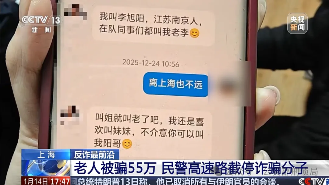 近日,上海市公安局杨浦分局反诈专班与四平路派出所民警高效联动,在高速上成功拦截一辆可疑车辆,为遭遇网络交友诈骗的张阿婆,成功挽损 55 万元巨款。