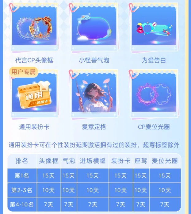 装扮卡可在个性装扮延期激活拥有过的勋章,超尊标签除外