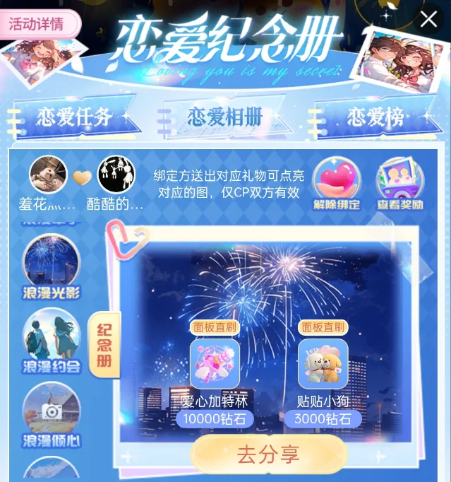 【活动】点亮恋爱纪念册,存档专属浪漫,赢撕漫恋人装扮五件套!