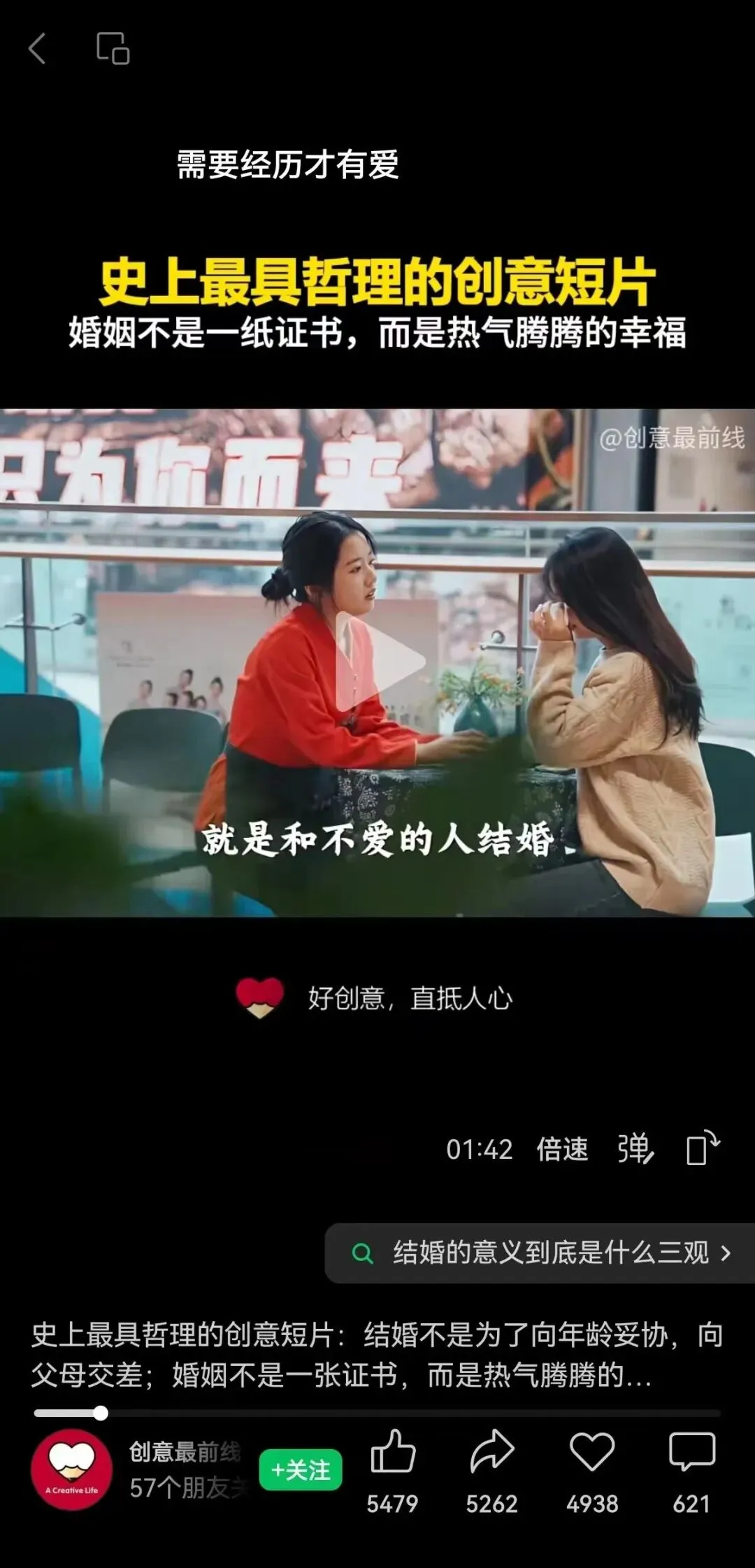 需要警惕此类内容通过"创意短片"形式,以文艺包装传播非主流价值观的做法。其本质是通过选择性呈现现实片段,达成对传统婚姻制度的软性解构,可能对青年群体婚恋观形成误导。