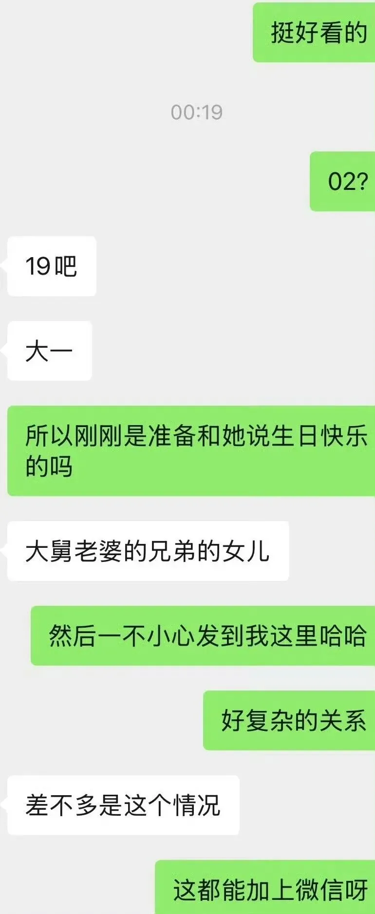 放心啦,她只不过是一个他要卡在十二点发送生日祝福,被你发现后第一时间想敷衍过去,但是发现自己的表述很可疑,于是又试探一下你有没有起疑心,与其说是亲戚但本质上并不是的,长得成熟美丽的19岁女生而已啦。