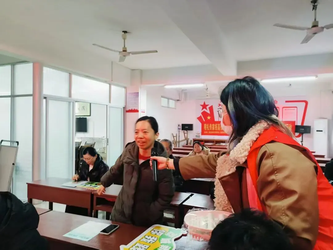 伴随着轻快的暖场音乐,活动正式拉开帷幕。社工开始主题讲座环节,以“明礼婚恋 幸福相伴”为核心,用通俗易懂的语言解读“明礼”内涵,点出高价彩礼对传统礼仪的异化本质;通过1-2个典型简短案例,直观剖析了高价彩礼对家庭经济、婚姻关系及乡村风气的负面影响;并向村民传递“爱情至上、责任为先”的婚恋理念,引导家长与青年形成共识。讲座后的互动问答环节,村民们积极举手提问,社工精准答疑,现场氛围热烈。
