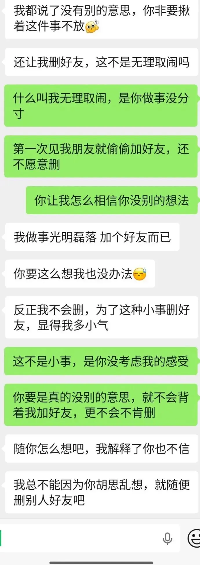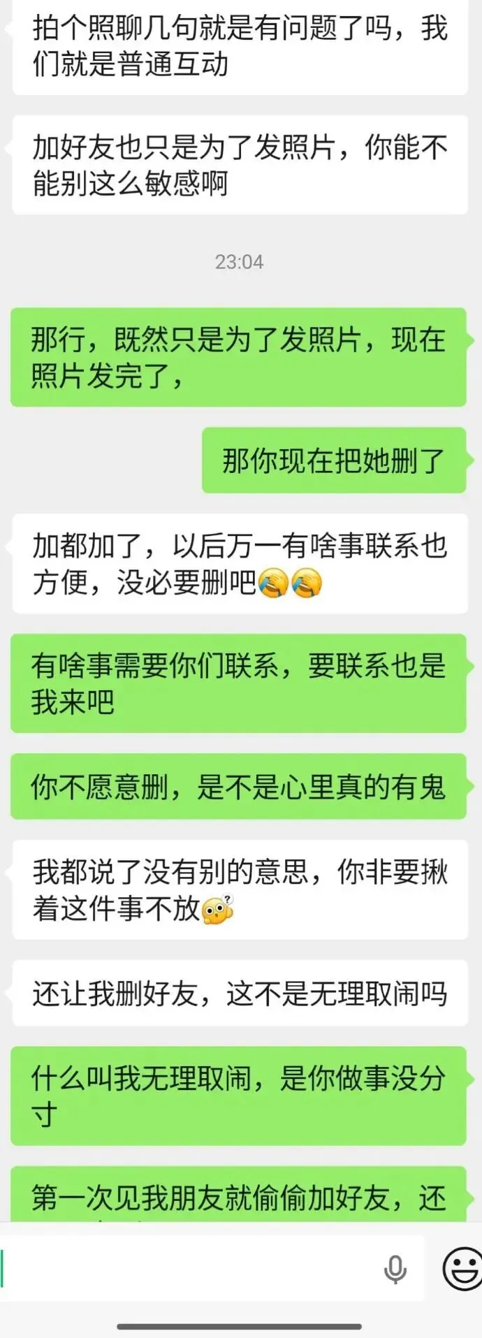 小林小林变成森林:我从来不加我朋友的男朋友的联系方式 我朋友要是上厕所什么的我话都不会和她男朋友说 你男朋友什么心思很明显了 真的没有小心思为什么不在你在场的时候大大方方加 偷偷摸摸加就是有问题sherry小梨酱:分!离家出走菠萝蜜:你看他把你的位置放的比第一次见的你朋友低多了那我谢谢你了喔:这种投稿看的气人不负茶汤好天气-:你已经感觉到他们有问题了,相信自己的直觉