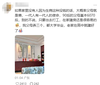 也有网友“一针见血”,现在还住土房子,是因为你的父母没有奋斗。