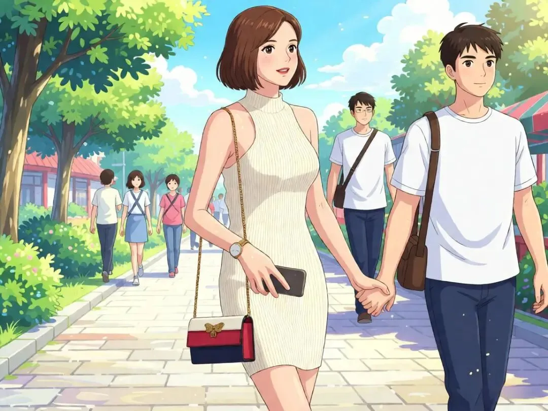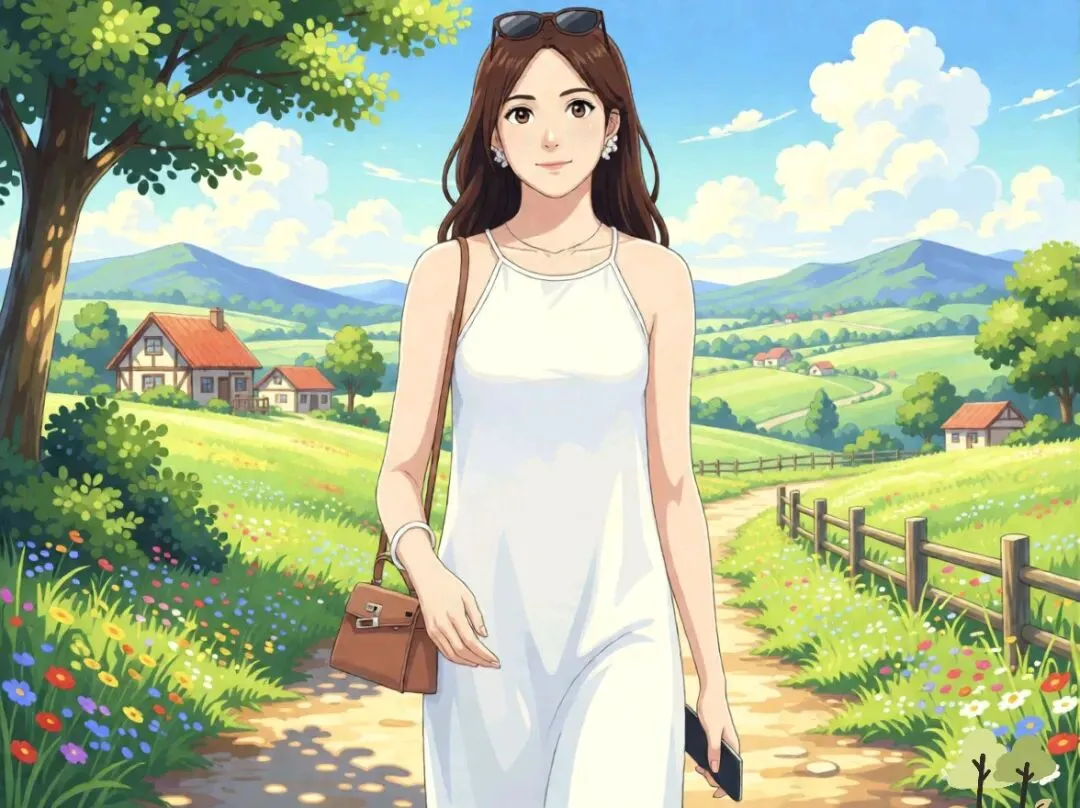 如果你的女朋友能如这动漫一样的漂亮,御姐型,她穿着这一条白色的吊带连衣裙,搭配一个小挎包,再戴上一个墨镜。
