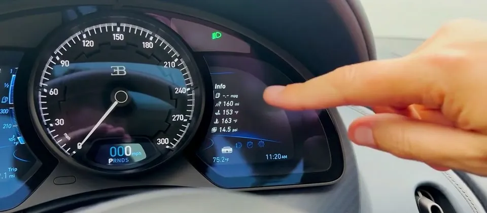 现在的车都流行搞大彩电,恨不得把整个仪表台都做成屏幕。但布加迪偏不,人家就用四个小显示按钮代替了那些花里胡哨的大屏。