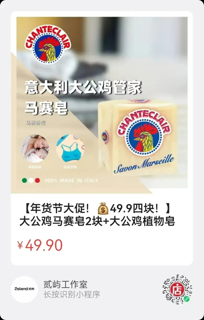8. 【年货节大促!💰49.9四块!】大公鸡马赛皂2块+大公鸡植物皂2块