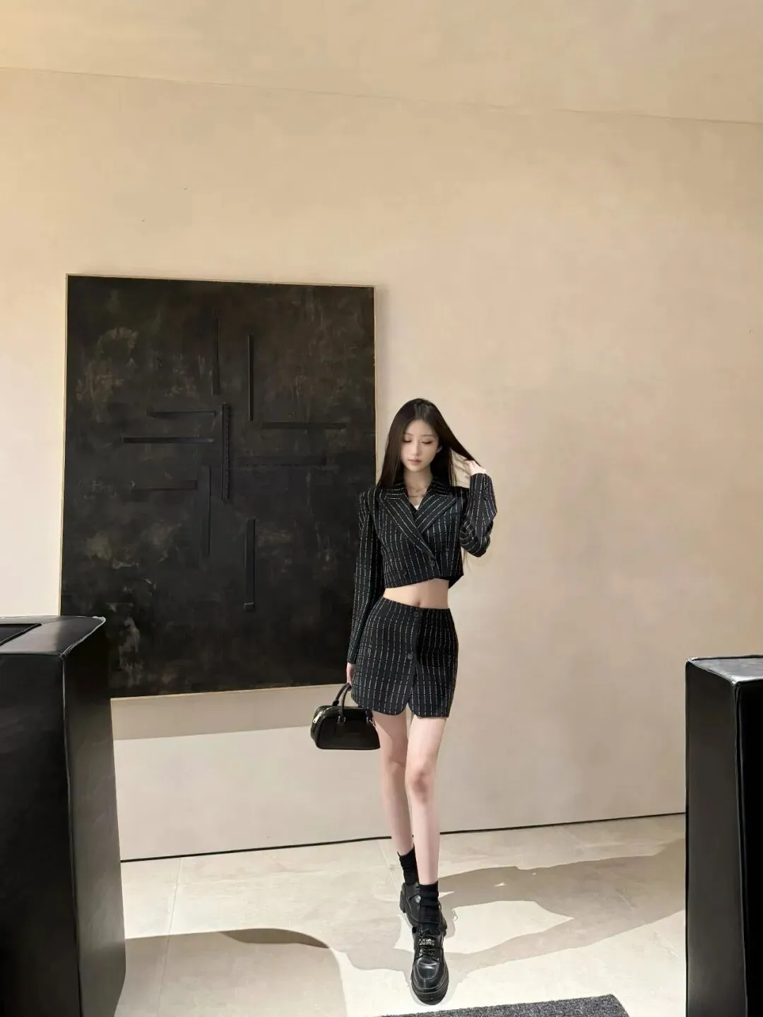 打破西装的刻板印象!短款露腰设计又 A 又辣,搭配裙裤又甜又酷,上班穿也不会太夸张,日常出街又很吸睛,一衣多穿 yyds