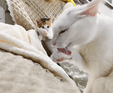 偷偷学大猫舔毛的小三花