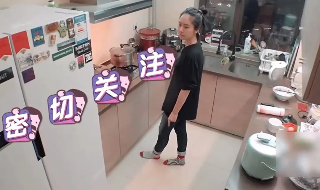 她很想和男友产生互动,于是在厨房里,有点像自言自语,又有点像是喊话外面的男生,