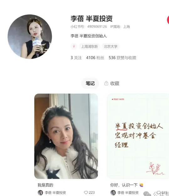 这两天,私募圈的百亿“魔女”李蓓低调入驻小红书,结果直接冲上热搜!一夜之间,评论区彻底沦陷,网友们化身“十万个为什么”,什么问题都敢问。其中有一个神评论直击灵魂:网友问,“蓓姐,你和洪灏真的谈过恋爱吗?”
