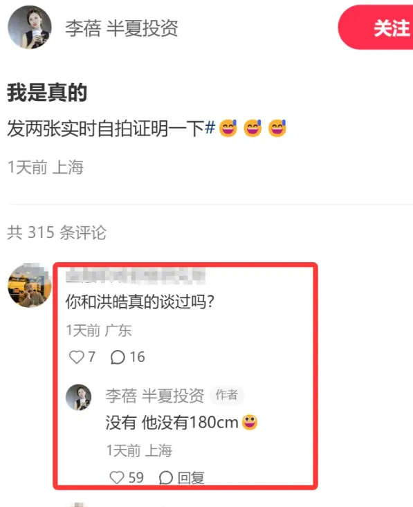 >大瓜!私募魔女李蓓回应与洪灏是否谈过恋爱:没有 他没有18cm