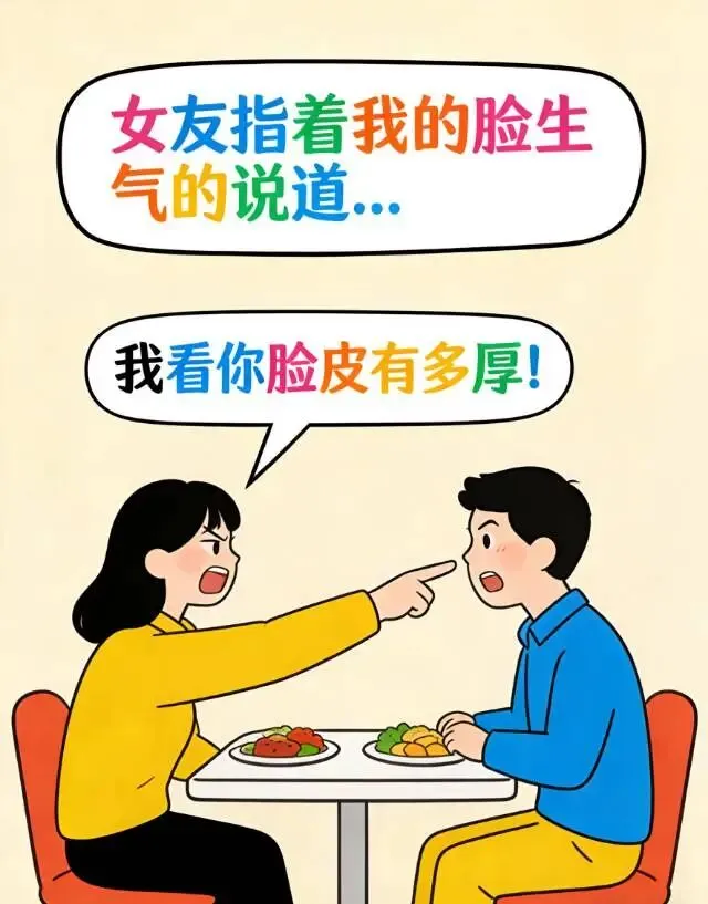 趣味故事:与女友吃饭时说:吃完饭我们要不要去看电影?我说:可以那你先买票她说:你看电影我看你!我说看我干嘛?她来一句:看你脸皮有多厚!