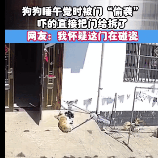 5.狗狗睡午觉,结果被门偷袭了。吓到狗狗直接把门给拆了。真是吓得不轻啊。