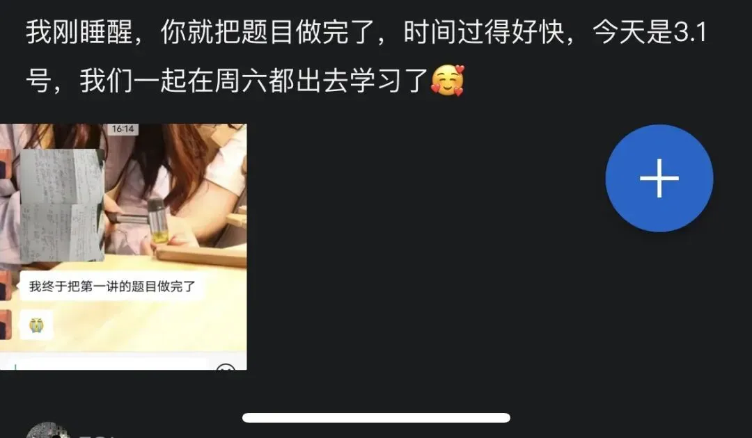 几乎每一个晚上,他回到宿舍已经十一点半,而我的宿舍也要熄灯休息了,所以大部分时候都只有晚上草草的打几分钟电话,或者是我不说话,静静地看着他。亦或者中午吃饭,他见缝插针的就和我打个视频电话,很多次,我也辗转反侧,觉得这段时间对我都有点难熬,于是消沉了些许时间,我决定开始了和他一起出门学习,主动找事情给自己做,充实自己,很长一段时间我也熬到图书馆关门回宿舍,打电话的时候,我们互相分析英语卷子,用我的文科思维帮助他记忆专业课和英语单词。就这样,我们稳定的度过了考研这段日子,我的陪考焦虑和分离焦虑也逐渐消减。看网上不少的例子考研面临着吵架和分开,但我们两个神奇地都有着一股信念,不停的给对方打气,一定要熬过去。