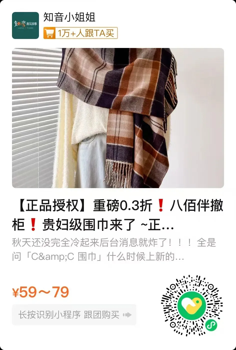 扫下面的码入知音省钱研究所的群,入群经常有福利。