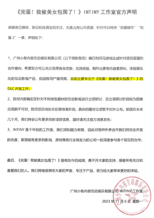就在11月6日,网上突然传出了《完蛋》将要出续作的消息。
