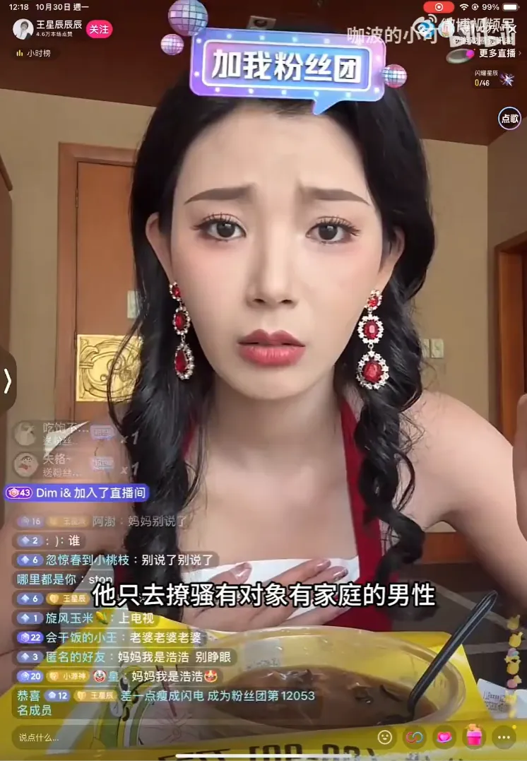但在另一边,有网友还发现之前王星辰在直播间说自己单身,其实是有男朋友的,并且还答应其他男性来横店见面。