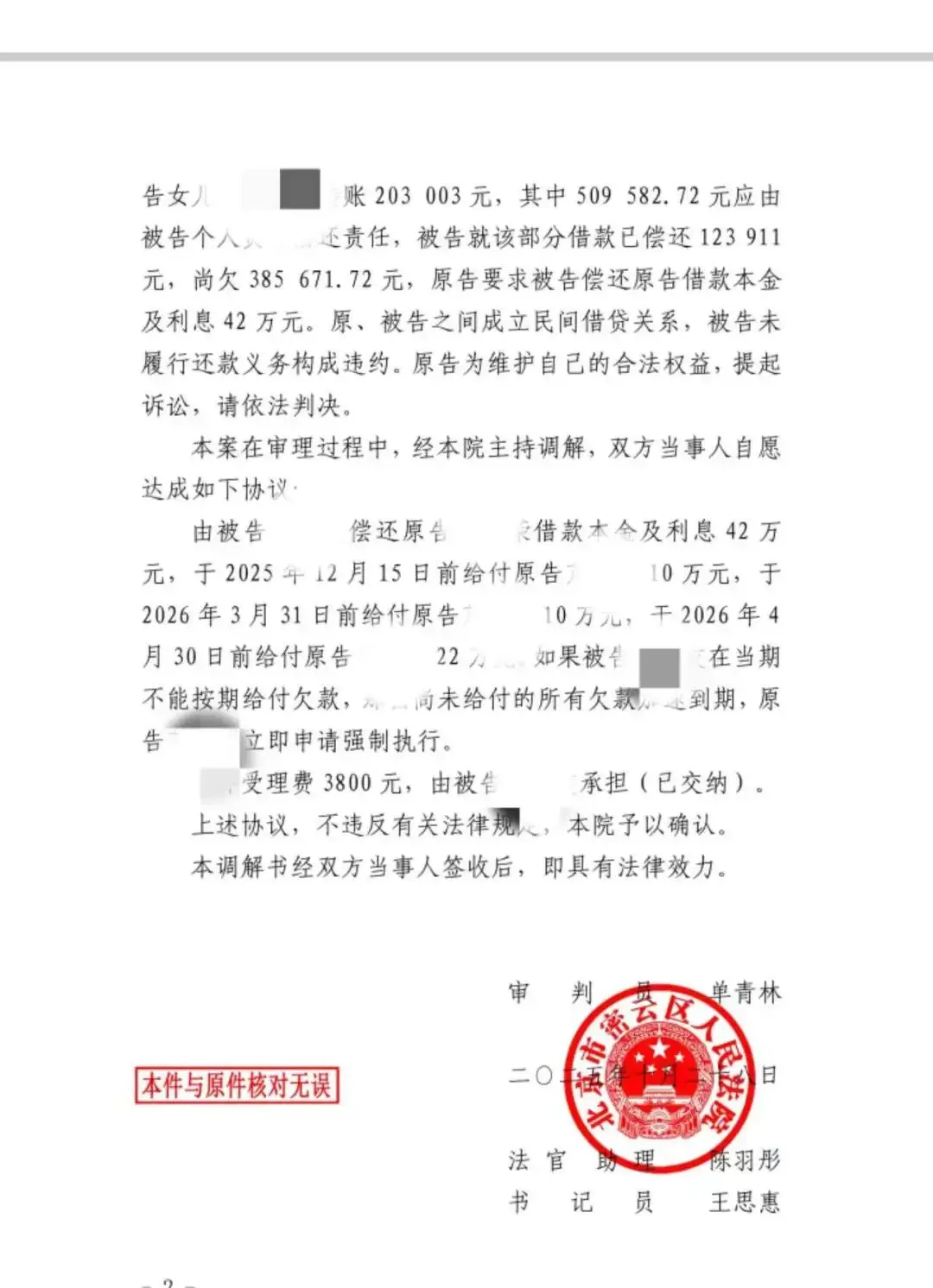 该调解书经双方签收后,已具备与判决书同等的强制执行力,既为李女士赢得了具有保障的还款方案,也避免了判决可能带来的漫长执行程序,高效、彻底地解决了纠纷。