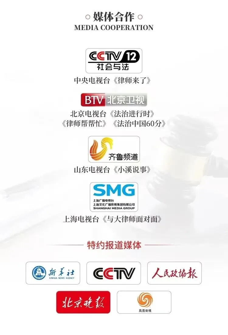 北京卫视《律师帮帮忙》、《法治进行时》特邀资深律师,社区公益普法出镜律师。