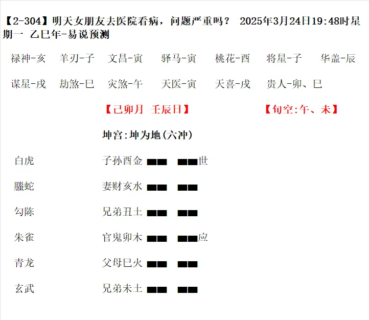 明天女朋友去医院看病,问题严重吗?(身体健康抱恙不舒服不适看病看医生就诊)- 易学易经周易六爻卜卦预测知识卦例