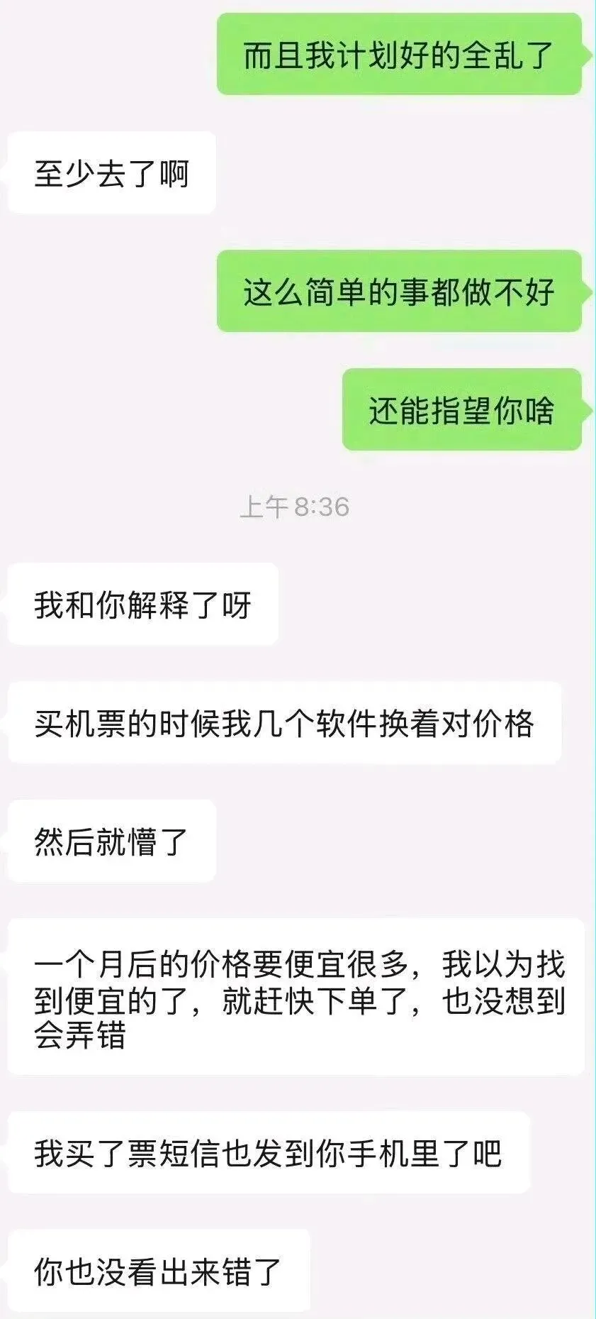 关爱红薯酱: 不明白为什么有人指责女生 男生真是废物 没机场发火已经很有素质了 男的就是嘴硬 他不可能不知道 就想不去而已 一步步引导说话 女生想的旅行就是放松去体验 看着意思男生恨不得两天都在酒店算了 什么心思昭然若可