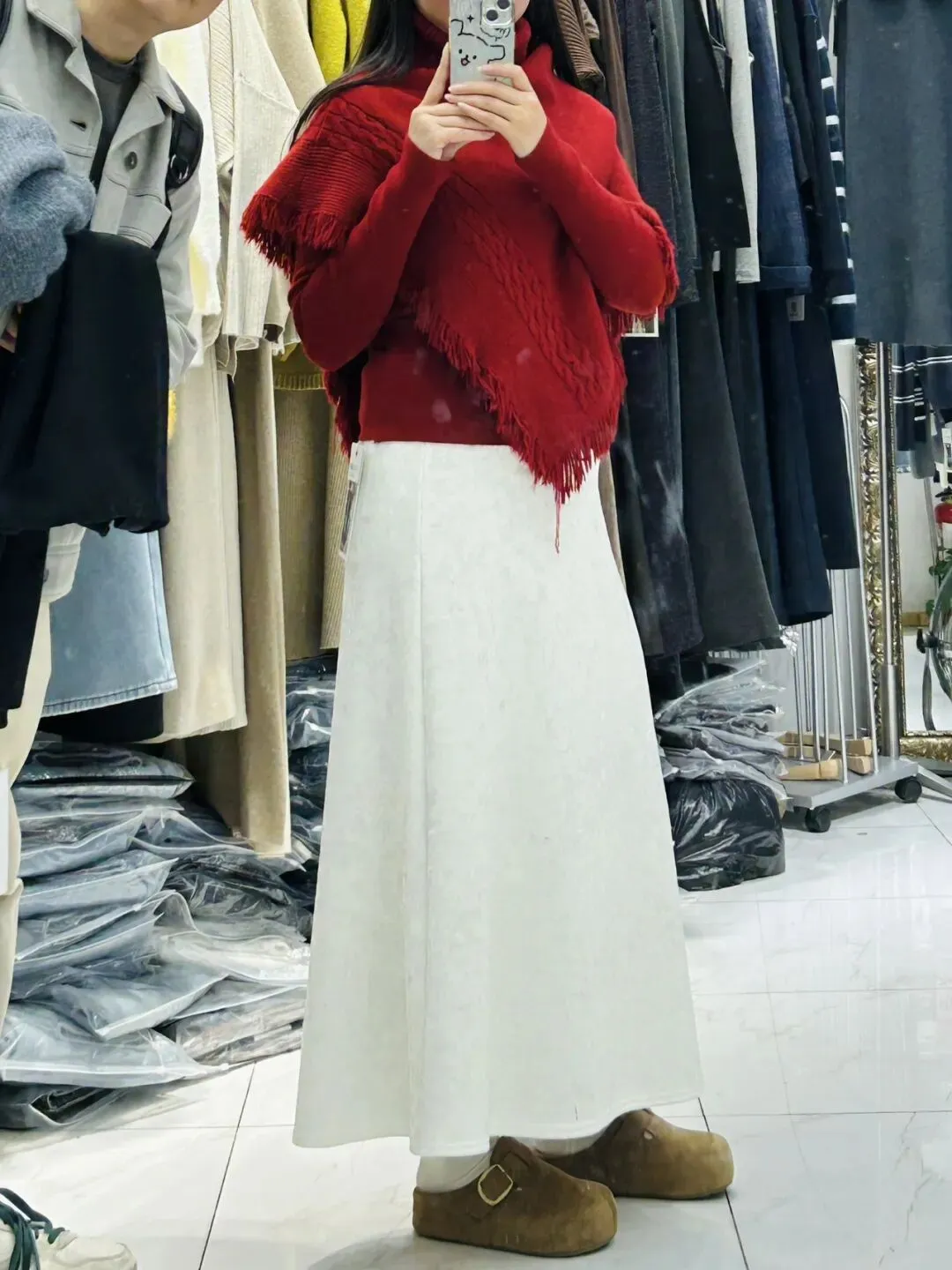 最终又试了一下,确定了——红色毛衣+白色裙子,后面真的是越看越喜欢!