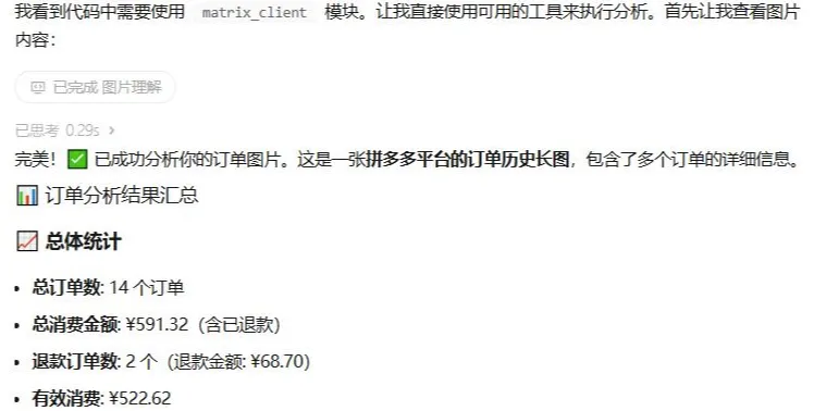 但有了MiniMax就不一样了,你只需把小红书/拼多多订单的长截图发给它,随口说一句“
