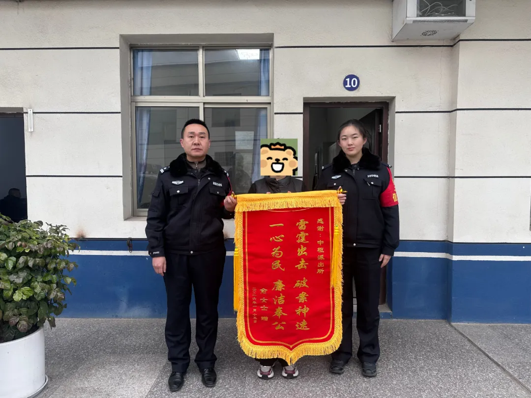 1月13日,中枢派出所成功侦破一起婚恋交友诈骗案件,跨省追击为受害人俞女士追回27万余元损失,受害人俞女士为表达感激,特意送来一面写有 “雷霆出击 破案神速,一心为民 廉洁奉公” 的锦旗。