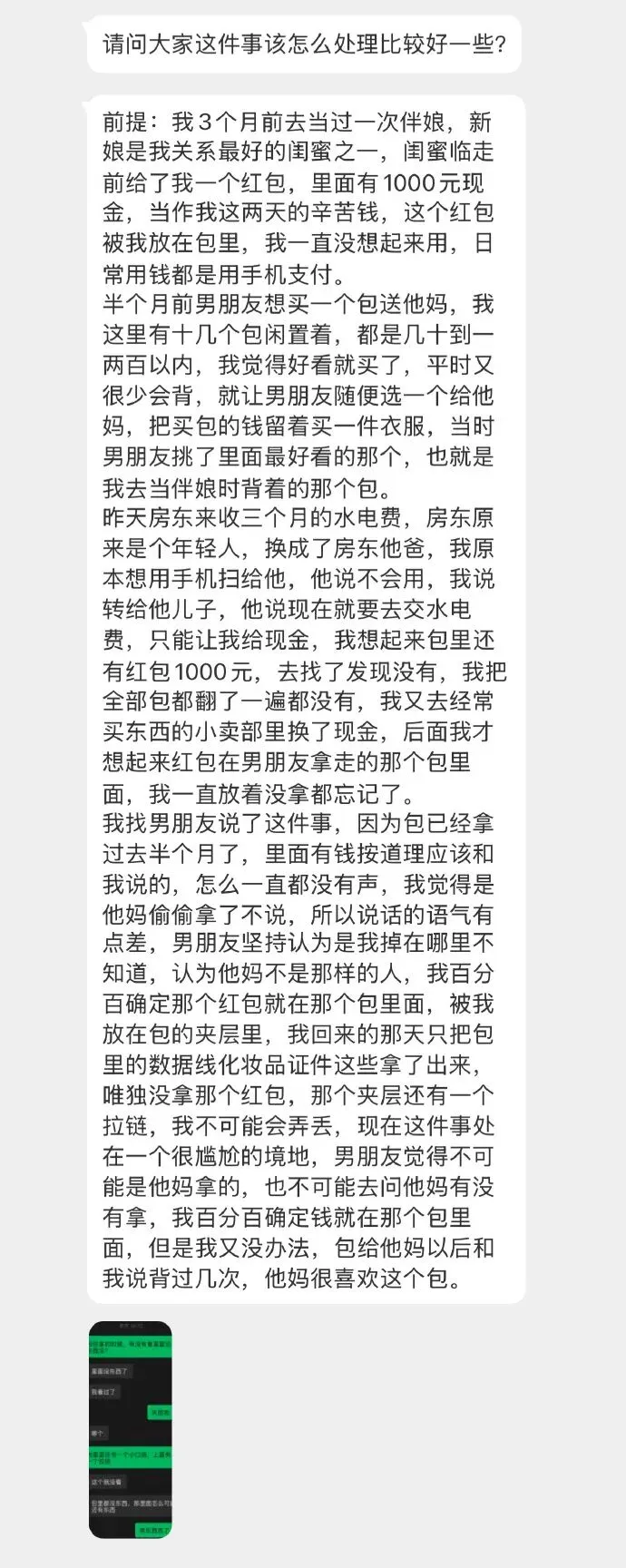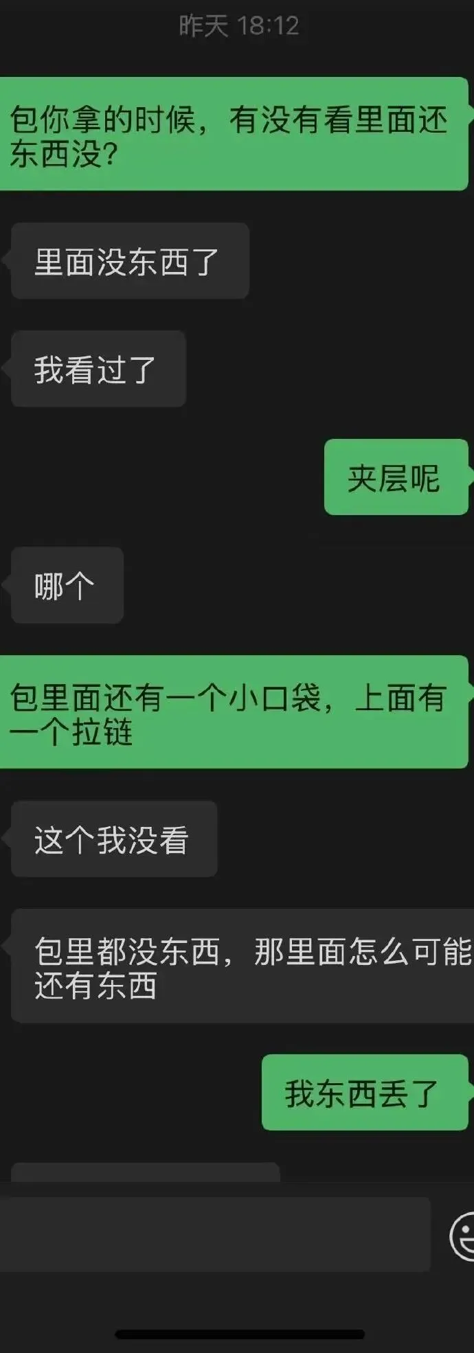 @洛希:你为什么不怀疑是你男朋友拿的???他这么坚信包里没有东西且不去问,明明他的嫌疑最大吧。。。