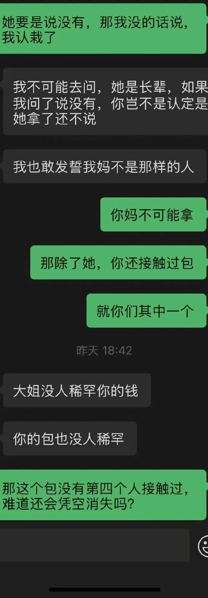 @喵呜呜:钱是谁拿的,基本上就是个无解的命题了。。。但是换位思考,我对象如果上来就这么笃定地说我妈拿了钱,我也会很不高兴甚至呛声。。。