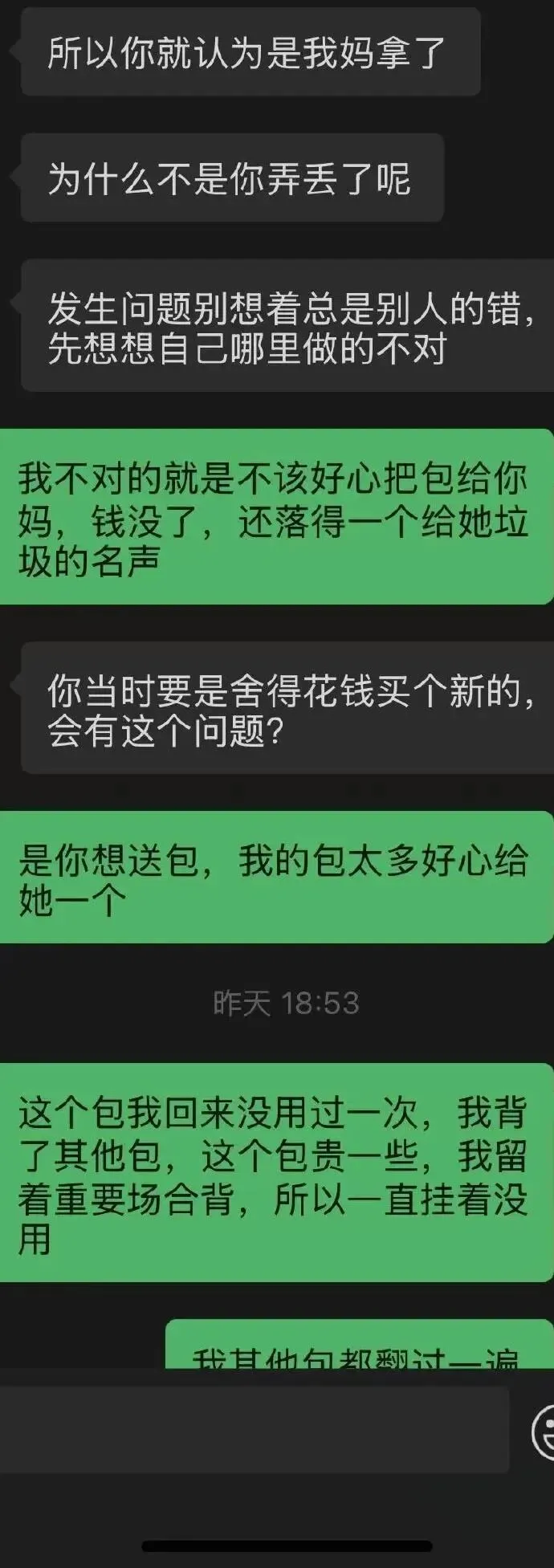 @天真的愿:他妈妈知道这个包是你用过的吗???如果不知道的话,她估计以为是儿子放包里孝顺她的。。。